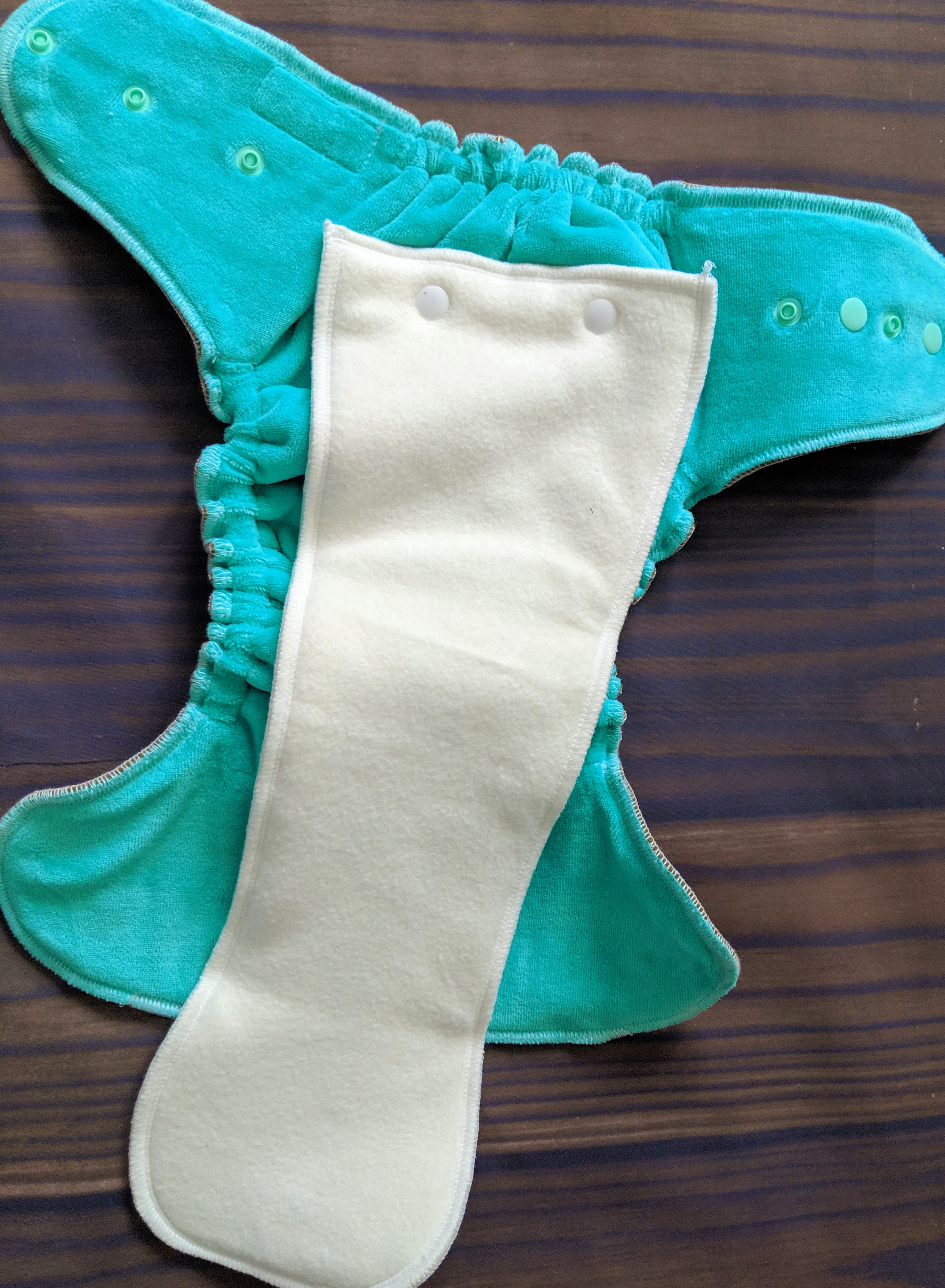 Cotton lyrca outer Hidden water resistant windpro 220 GSM velour linin 2 layers of 420 GSM bamboo insert 10-48+lbs