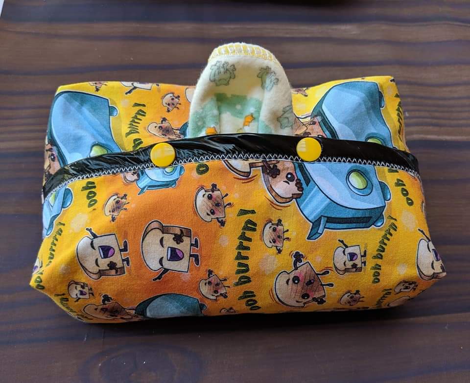Like with polyurethane film. The same film used in PUL. Hold about 25 cloth wipes up to 7.5 inches wide. Perfect for z folds. Pop up through the tab!