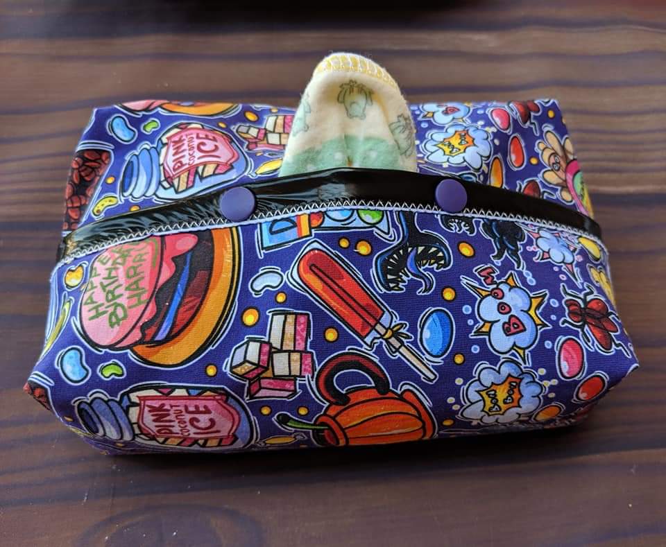 Like with polyurethane film. The same film used in PUL. Hold about 25 cloth wipes up to 7.5 inches wide. Perfect for z folds. Pop up through the tab!