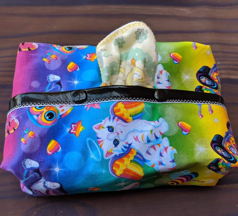 Like with polyurethane film. The same film used in PUL. Hold about 25 cloth wipes up to 7.5 inches wide. Perfect for z folds. Pop up through the tab!